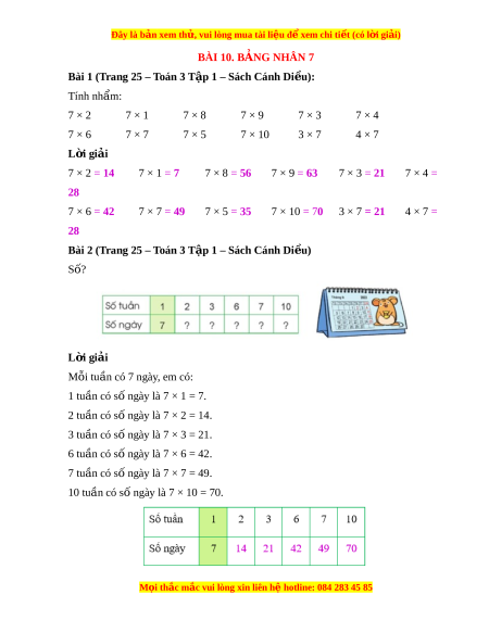 ệ đ xe ể m chi ti t (c ế ó lời gi i ả ) BÀI 10. BẢNG NHÂN 7