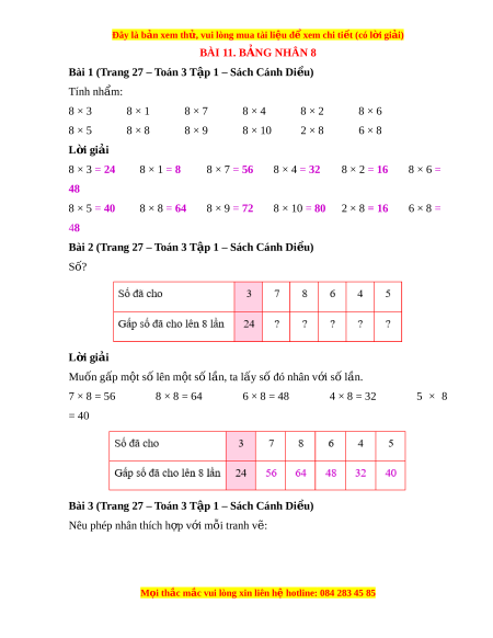 ệ đ xe ể m chi ti t (c ế ó lời gi i ả ) BÀI 11. BẢNG NHÂN 8