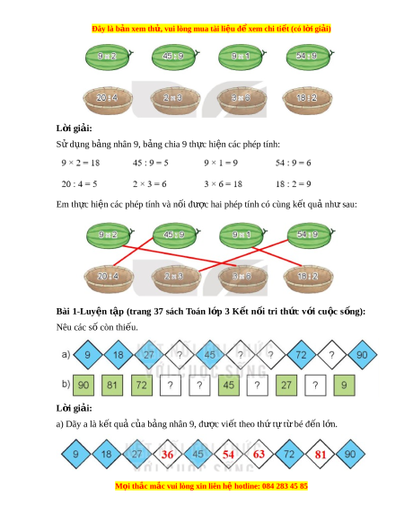 ệ tập (trang 37 sách Toán l p ớ 3 K t ế n i ố tri th c ứ v i ớ cu c ộ s ng) ố : Nêu các số còn thi u. ế L i ờ giải: a) Dãy a là k t ế quả c a b ủ ng ả nhân 9, đư c vi ợ t ế theo thứ t t ự bé đ ừ n l ế n. ớ M i