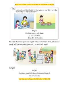 b) Có 20 cái bánh, chia đ u ề vào 5 h p. ộ Mỗi h p có s ộ ố cái bánh là: 20 : 5 = 4 (cái bánh) Em có phép chia 20 : 5 = 4.
