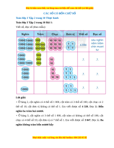 ệ đ xe ể m chi ti t (c ế ó lời gi i ả ) CÁC S C Ố Ó B N Ố CH S Ữ Ố Toán l p 3 ớ T p 2 t ậ rang 10 Th c hành ự Toán l p 3 ớ T p 2 t ậ rang 10 Bài 1: Vi t ế số, đ c s ọ ố (theo m u ẫ ): L i ờ giải: + Ở hàng 2, c t ộ nghìn có 4 th ẻ s ố 1 000, c t ộ trăm có 3 th ẻ s ố 100; c t ộ ch c ụ có 2 thẻ số 10; c t ộ đ n