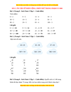 BÀI 2. ÔN TẬP VỀ PHÉP C N Ộ G, PHÉP TR Ừ TRONG PH M Ạ VI 1000