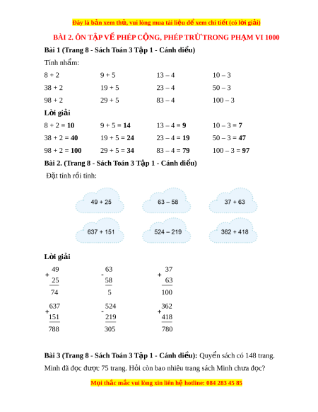 Bài 3 (Trang 8 - Sách Toán 3 T p 1 - Cánh di u): ậ ề Quy n sách có 148 trang. ể
