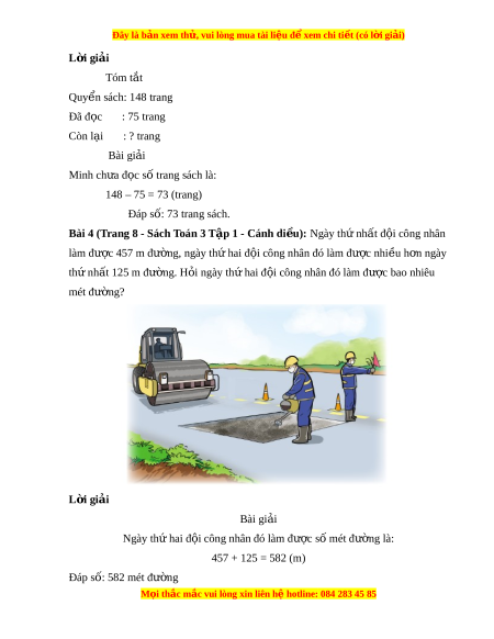 Bài 4 (Trang 8 - Sách Toán 3 T p 1 - ậ Cánh di u) ề : Ngày th nh ứ ất đ i ộ công nhân làm đư c 457 m ợ đư ng, ờ ngày th hai ứ đ i