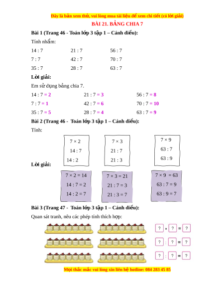 ệ đ xe ể m chi ti t (c ế ó lời gi i ả ) BÀI 21. BẢNG CHIA 7