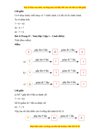 Bài 4 (Trang 47 - Toán l p 3 t ớ p 1 – C ậ ánh di u ề ): Tính (theo m u ẫ ): Mẫu: L i ờ giải: