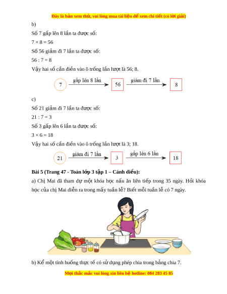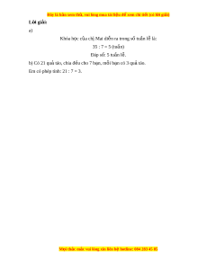 ệ đ xe ể m chi ti t (c ế ó lời gi i ả ) L i ờ giải: a) Khóa h c c ọ a ủ ch M ị ai di n ễ ra trong s t ố u n l ầ l ễ à: 35 : 7 = 5 (tu n ầ ) Đáp số: 5 tu n l ầ . ễ b) Có 21 qu t ả áo, chia đ u cho 7 b ề n, m ạ i ỗ b n có ạ 3 qu t ả áo.