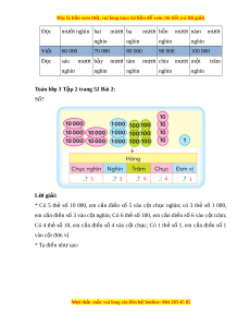 ệ đ xe ể m chi ti t (c ế ó lời gi i ả ) Đ c ọ mư i ờ nghìn hai mư i ơ ba mư i ơ bốn mư i ơ năm mư i ơ nghìn nghìn nghìn nghìn Vi t ế 60 000 70 000 80 000 90 000 100 000 Đ c ọ sáu mư i ơ b y ả mư i ơ tám mư i ơ chín mư i ơ m t ộ trăm nghìn nghìn nghìn nghìn nghìn Toán l p 3 ớ T p 2 t ậ rang 52 Bài 2: Số? 5 3 6 4 1 L i ờ giải: