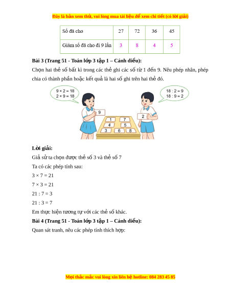 ả à hai số ghi trên hai th đó. ẻ L i ờ giải: Gi s ả ử ta ch n đ ọ ược th s ẻ 3 và t ố h s ẻ 7 ố Ta có các phép tính sau: 3 × 7 = 21 7 × 3 = 21 21 : 7 = 3 21 : 3 = 7 Em th c hi ự n t ệ ư ng ơ t v ự i ớ các th s ẻ khác. ố