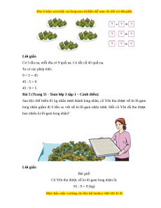 bao nhiêu ki-lô-gam long nhãn? L i ờ giải: Bài gi i ả Cô Yên thu đư c ợ s ki ố -lô-gam long nhãn là: 81 : 9 = 9 (kg) M i