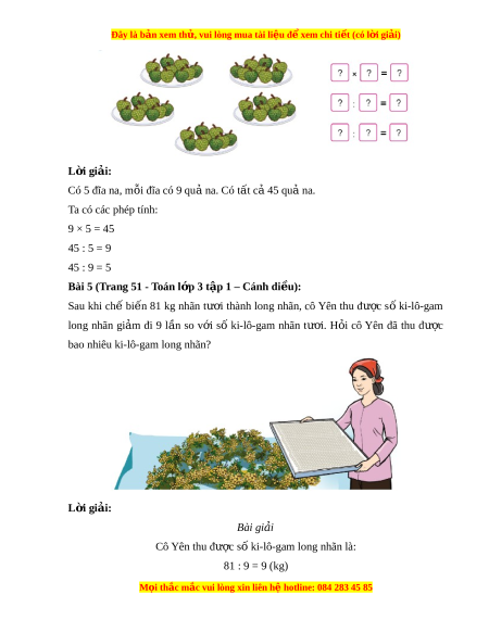Bài 5 (Trang 51 - Toán l p 3 t ớ p 1 – C ậ ánh di u ề ): Sau khi chế bi n ế 81 kg nhãn tư i