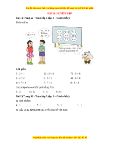 ệ đ xe ể m chi ti t (c ế ó lời gi i ả ) L i ờ giải: a) 4 : 1 = 4 7 : 1 = 7 5 : 1 = 5 1 : 1 = 1 b) Ví d : ụ 2 : 1 = 2 3 : 1 = 3 6 : 1 = 6 8 : 1 = 8 9 : 1 = 9 …