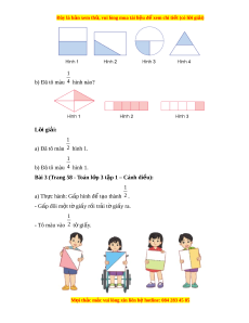 ệ đ xe ể m chi ti t (c ế ó lời gi i ả ) 1 b) Th c ự hành: G p hì ấ nh đ t ể o t ạ hành 4 . - Gấp đôi m t ộ t gi ờ ấy, rồi l i ạ gấp đôi ti p. ế - Vuốt th ng ẳ góc rồi tr i ả t gi ờ y r ấ a. 1 - Tô màu vào 4 t gi ờ ấy. L i ờ giải: H c s ọ inh t t ự h c hành. ự