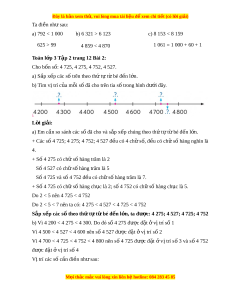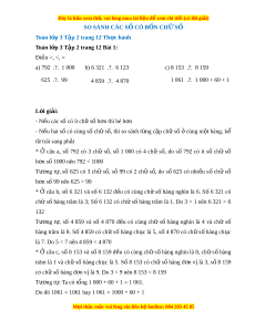 ệ đ xe ể m chi ti t (c ế ó lời gi i ả ) Ta đi n nh ề s ư au: a) 792 < 1 000 b) 6 321 > 6 123 c) 8 153 < 8 159 625 > 99 4 859 < 4 870 1 061 = 1 000 + 60 + 1 Toán l p 3 ớ T p 2 t ậ rang 12 Bài 2:
