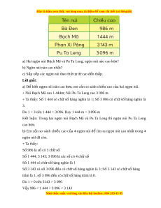 ạ Mã và Pu Ta Leng, ng n núi ọ nào cao h n? ơ b) Ng n ọ núi nào cao nh t ấ ? c) S p x ắ p các ế ng n núi ọ theo th t ứ t ự cao đ ừ n ế th p. ấ L i ờ giải: a) Đ bi ể t ế ng n núi ọ nào cao h n, ơ em c n s ầ o sánh chi u cao c ề a ủ hai ng n núi ọ . + Núi B ch
