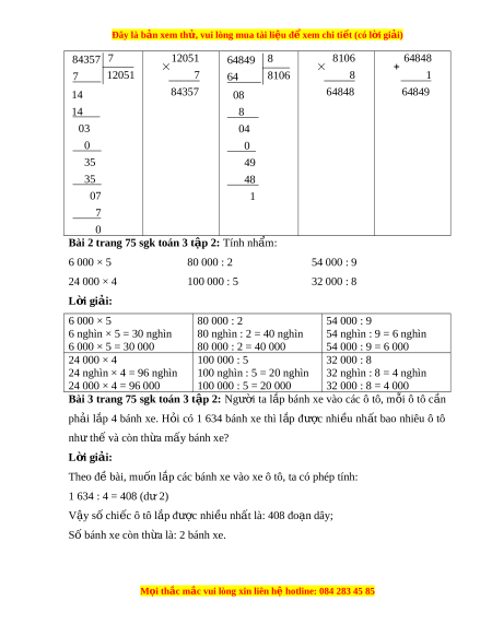 Bài 3 trang 75 sgk toán 3 t p ậ 2: Ngư i ờ ta l p