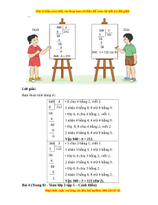 ệ đ xe ể m chi ti t (c ế ó lời gi i ả ) L i ờ giải: B n ạ Hoài tính đúng vì: 848 4 • 8 chia 4 b ng 2, vi ằ t ế 2. 8 212 2 nhân 4 b ng ằ 8, 8 trừ 8 b ng 0. ằ 04 • Hạ 4, 4 chia 4 b ng ằ 1, vi t ế 1. 4 1 nhân 4 b ng ằ 4, 4 trừ 4 b ng 0. ằ 08 • Hạ 8, 8 chia 4 b ng ằ 2, vi t ế 2. 8 2 nhân 4 b ng ằ 8, 8 trừ 8 b ng 0. ằ 0 Vậy 848 : 4 = 212. 368 3 • 3 chia 3 b ng 1, vi ằ t ế 1. 3 122 1 nhân 3 b ng ằ 3, 3 trừ 3 b ng 0. ằ 06 • Hạ 6, 6 chia 3 b ng ằ 2, vi t ế 2. 6 2 nhân 3 b ng ằ 6, 6 trừ 6 b ng 0. ằ 08 • Hạ 8, 8 chia 3 b ng ằ 2. 6 2 nhân 3 b ng ằ 6, 8 trừ 6 b ng 2. ằ 2