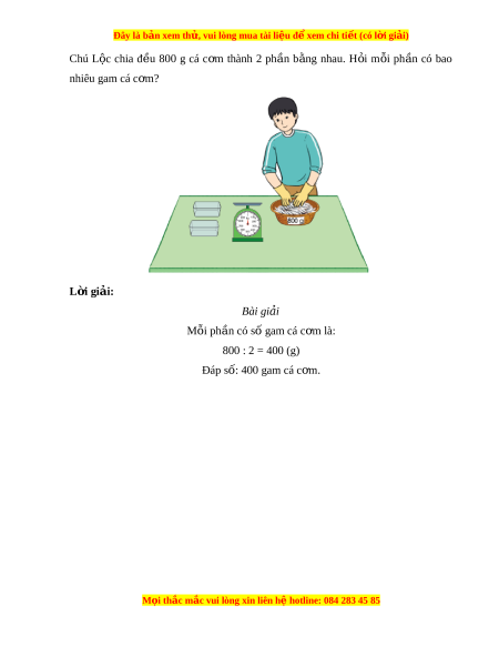 Chú L c chia đ u 800 g cá c m thành 2 ph n b ng nhau. H i m i ph n có baoộ ề ơ ầ ằ ỏ ỗ ầ