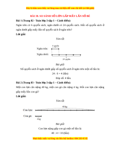 ệ đ xe ể m chi ti t (c ế ó lời gi i ả ) Số l n g ớ ấp mấy lần số bé? 3 ? ? ? ? Số l n ớ h n ơ số bé bao nhiêu đ n ơ 8 ? ? ? ? vị? L i ờ giải: - Muốn bi t ế số l n g ớ p m ấ y l ấ n s ầ ố bé, ta l y s ấ ố l n chi ớ a cho s bé. ố - Muốn bi t ế số l n h ớ n s ơ ố bé bao nhiêu đ n v ơ t ị a l y s ấ ố l n t ớ r đi ừ số bé. Số l n ớ 12 45 35 24 42 Số bé 4 5 7 3 6 Số l n g ớ ấp mấy lần số bé? 3 9 5 8 7 Số l n ớ h n ơ số bé bao nhiêu đ n ơ 8 40 28 21 36 vị?
