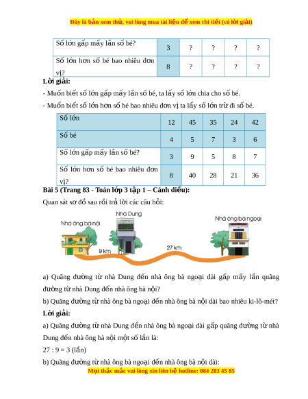 ộ dài bao nhiêu ki-lô-mét? L i ờ giải: a) Quãng đư ng ờ từ nhà Dung đ n ế nhà ông bà ngo i ạ dài g p ấ quãng đư ng ờ t ừ nhà Dung đ n nhà ông bà n ế i ộ m t ộ số lần là: 27 : 9 = 3 (l n ầ ) b) Quãng đư ng t ờ nhà ông bà ngo ừ i ạ đ n nhà ông bà n ế i ộ dài: M i