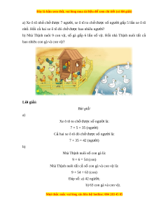 bao nhiêu con gà và con vịt? L i ờ giải: Bài gi i ả a) Xe ô tô to chở đư c s ợ ố ngư i ờ là: 7 × 5 = 35 (ngư i ờ ) C hai ả xe ô tô đó chở đư c s ợ ố ngư i ờ là: 7 + 35 = 42 (ngư i ờ ) b)