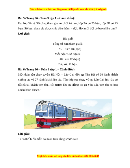 Bài 6 (Trang 86 – Toán 3 t p 1 – C ậ ánh di u) ề : M t ộ đoàn tàu ch y ạ tuy n ế Hà N i ộ – Lào Cai, đ n