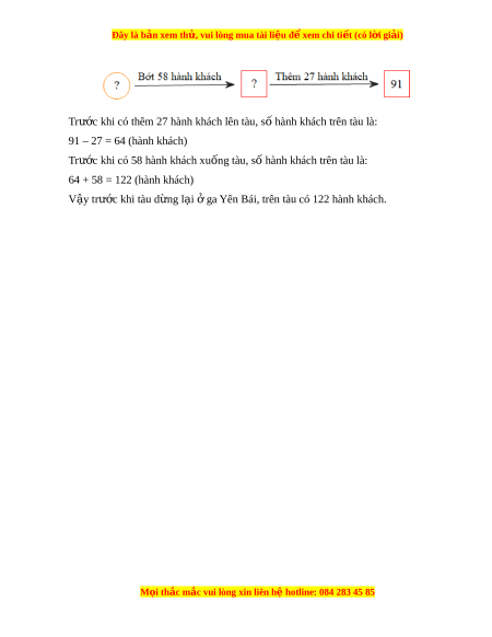 ạ ga Yên Bái, trên tàu có bao nhiêu hành khách? L i ờ giải: Ta có th bi ể u di ể n bài ễ toán trên b ng s ằ đ ơ s ồ au: M i