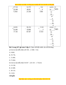ứ (20 354 – 2 338) × 4 là: A. 9 802. B. 78 778. C. 72 904. D. 72 064. b) Giá tr c ị a bi ủ u t ể h c