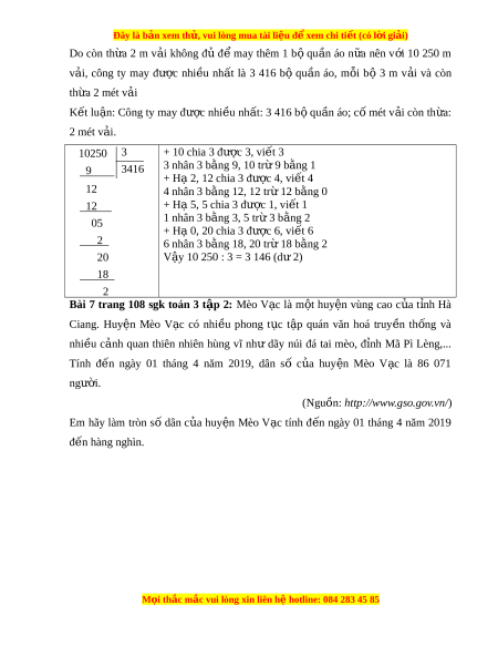 Bài 7 trang 108 sgk toán 3 t p 2: ậ Mèo V c là m t huy n vùng cao c a t nh Hàạ ộ ệ ủ ỉ