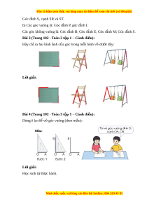 Bài 3 (Trang 102 - Toán 3 t p 1 – C ậ ánh di u ề ): Hãy chỉ ra hai hình nh c ả a ủ góc trong m i ỗ hình v d ẽ ư i ớ đây: L i ờ giải: