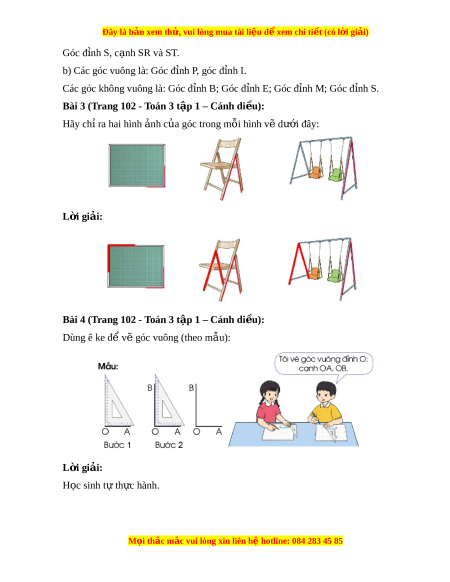 Giải Sgk Toán lớp 3 Bài 48: Góc vuông, góc không vuông (Cánh diều)