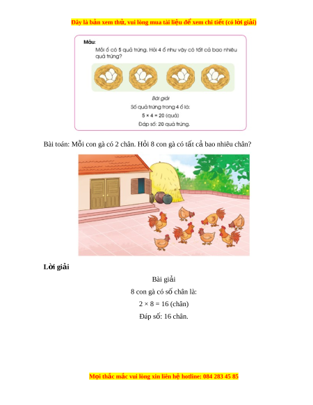 Bài toán: M i con gà có 2 chân. H i 8 con gà có t t c bao nhiêu chân?ỗ ỏ ấ ả