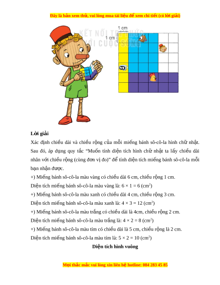 ế bánh sô-cô-la màu tím là: 5 × 2 = 10 (cm2) Di n t ệ ích hình vuông M i