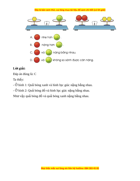 - hình 1: Qu bóng xanh và hình l c giác n ng b ng nhau.Ở ả ụ ặ ằ