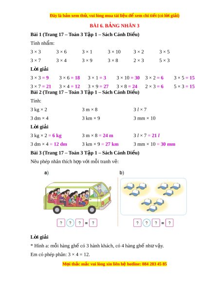 Giải Sgk Toán lớp 3 Bài 6: Bảng nhân 3 (Cánh diều)