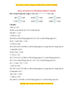 ấu “>”, “<”, “=” thích h p. ợ L i ờ giải: • 861 và 1 237 Số 861 có ba ch s ữ ố; s 1 237 có b ố n ch ố s ữ ố. V y 861 < 1 237 ậ . • 8 544 và 1 541