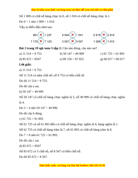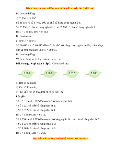 ệ đ xe ể m chi ti t (c ế ó lời gi i ả ) Do đó câu d đúng. e) 89 156 < 87 652