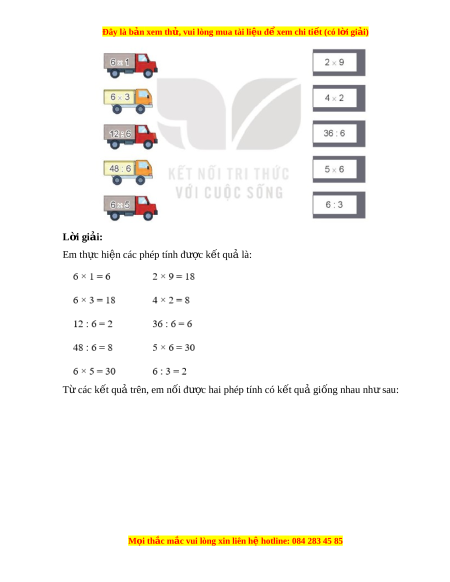 ệ đ xe ể m chi ti t (c ế ó lời gi i ả ) L i ờ giải: Em th c hi ự n các ệ phép tính đư c k ợ t ế qu l ả à: T các ừ k t ế quả trên, em n i ố đư c hai ợ phép tính có k t ế qu gi ả ng nhau nh ố s ư au: M i