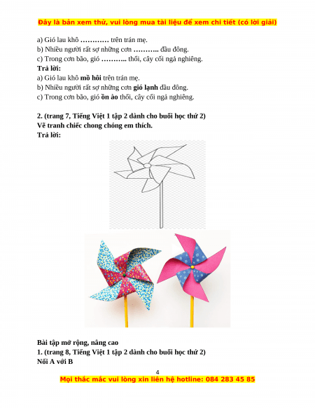 Vẽ tranh chiếc chong chóng em thích. Trả lời: