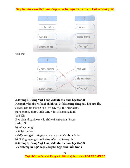 2. Trả lời câu hỏi (trang 5, Tiếng Việt 1 tập 2 dành cho buổi học thứ 2)