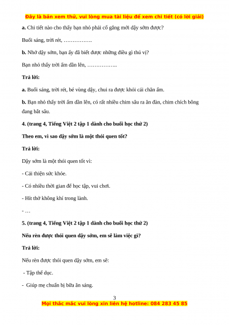 Nếu rèn được thói quen dậy sớm, em sẽ làm việc gì? Trả lời: