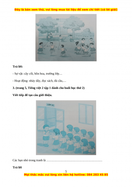 5. (trang 4, Tiếng Việt 2 tập 1 dành cho buổi học thứ 2)
