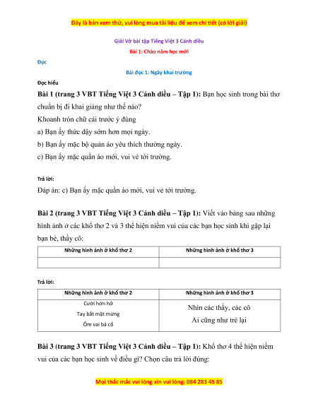 Bài đọc 1: Ngày khai trường Đọc hiểu
