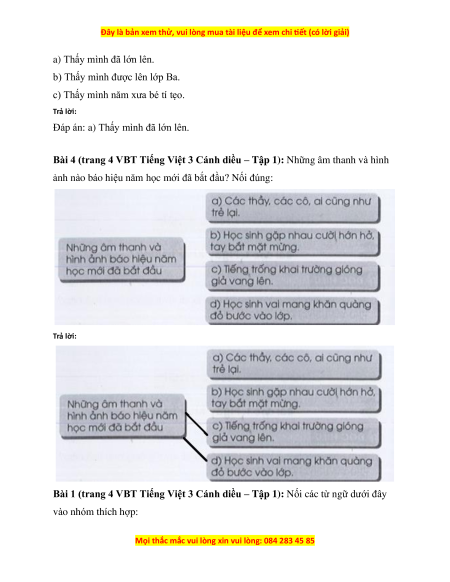 ảnh nào báo hiệu năm học mới đã bắt đầu? Nối đúng: Trả lời:
