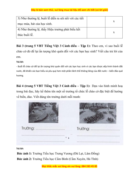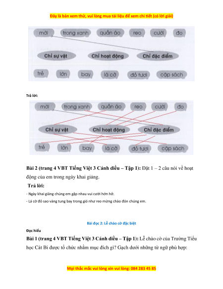 Bài 1 (trang 4 VBT Tiếng Việt 3 Cánh diều – Tập 1): Lễ chào cờ của Trường Tiểu