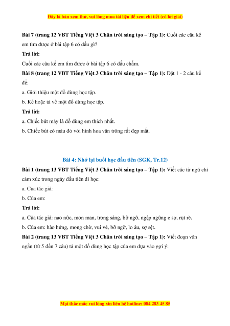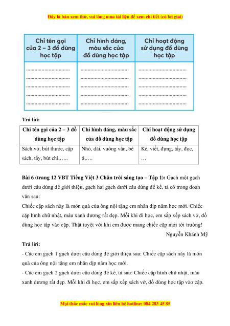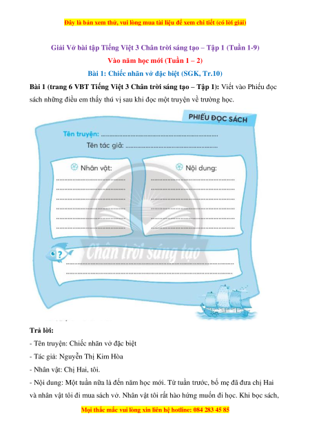 Bài 1: Chiếc nhãn vở đặc biệt (SGK, Tr.10)