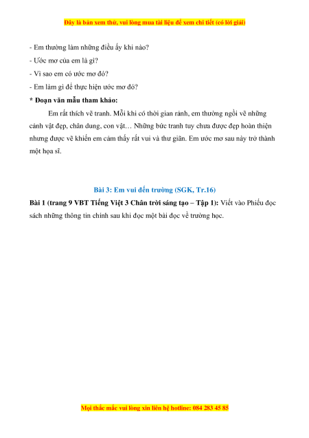 ngắn (từ 4 đến 5 câu) giới thiệu sở thích và ước mơ của em. Trả lời: * Gợi ý viết: