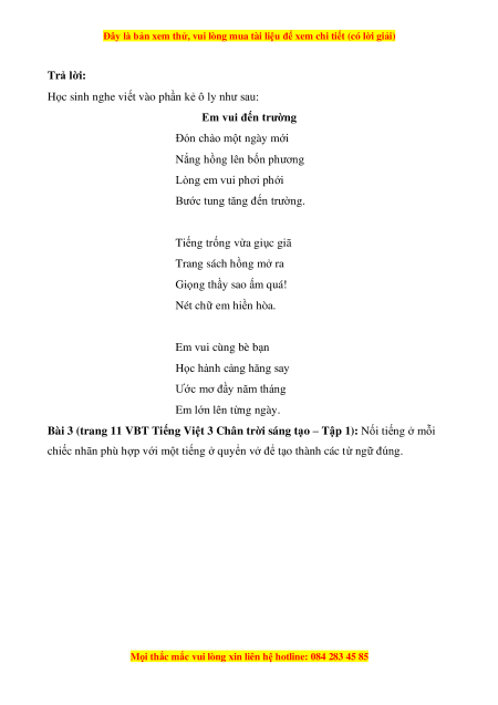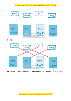 - Tailieugiaovien.com.vn giới thiệu giải vbt Tiếng Việt lớp 3 Chân trời sáng tạo hay nhất, chi tiết đầy đủ Tập 1 & Tập 2 sẽ giúp học sinh dễ dàng làm bài tập Tiếng Việt lớp 3, từ đó đạt điểm cao trong các bài thi môn Tiếng Việt 3.