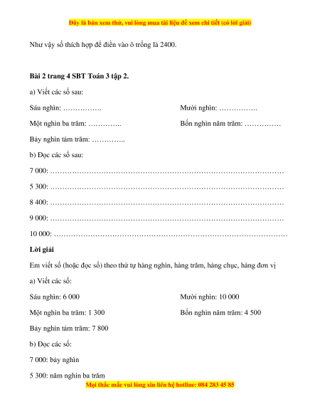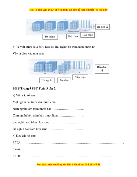 Bài 2 trang 4 SBT Toán 3 tập 2. a) Viết các số sau: Sáu nghìn: …………….