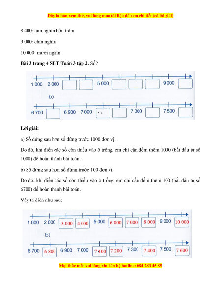 Do đó, khi điền các số còn thiếu vào ô trống, em chỉ cần đếm thêm 1000 (bắt đầu từ số